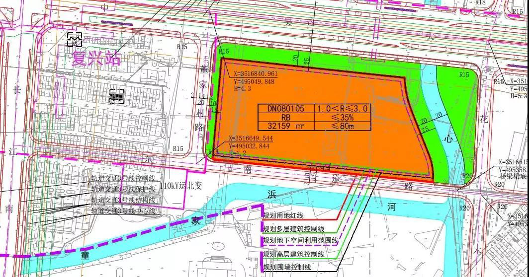地块所处区位交通便捷,沿北侧丁香路往西3.5公里至江宜高速道口,往南1.0公里至龙江路高架道口;距离BRT2号线站台1公里,轨道交通4号在地块西侧茶花路通过,且在地块西北角设置北港站。