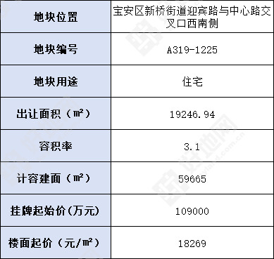 好地网8月3日讯(研究员 黄卓贤)8月4日,深圳将出让1宗宅地,位于宝安区新桥街道,土地面积19246.94㎡,容积率3.1,最大建筑面积59665㎡,起价109000万元,楼面起价18269元/㎡。