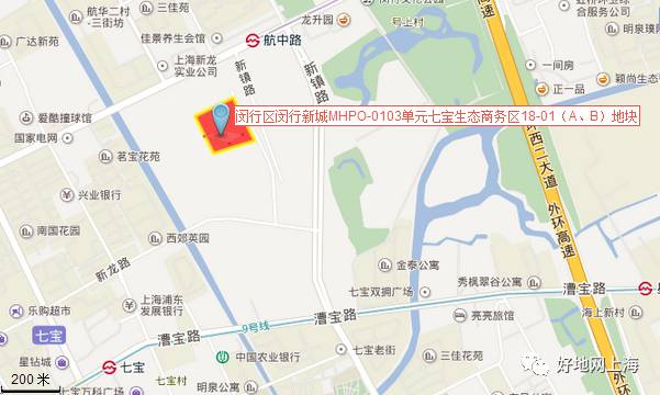 闵行区闵行新城MHPO-0103单元七宝生态商务区18-01(A、B)地块,东至:航西路,南至:用地边界线,西至:航新路,北至:规划路,用地性质为商办,出让方式为挂牌,出让面积22234㎡,容积率3.9,建筑面积86712.6㎡,起拍价82550万元,楼面起价9520元/㎡,需要自持80%商业物业(6937.01㎡)不少于20年,自持50%办公物业(39020.67㎡)不少于20年。