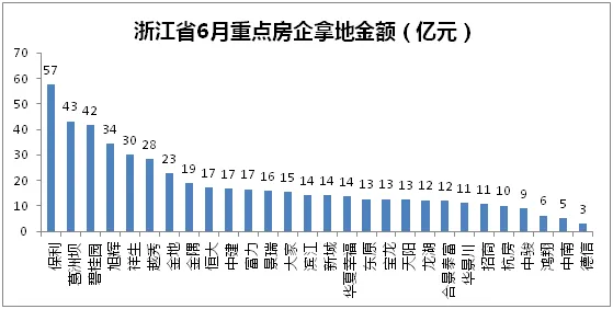 本月在浙江范围内拿地的重点房企有:宝龙、保利、滨江、大家、德信、东原、富力、葛洲坝、杭房、合景泰富、恒大、鸿翔、华景川、华夏幸福、金地、金隅、景瑞、龙湖、天阳、祥生、旭辉、越秀、招商地产、新城、中建、中南、中骏。