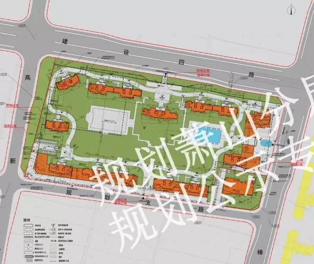 项目规划建造10幢高层建筑,呈“口”字分布在外围,中建将建公园绿地以及景观水系。
