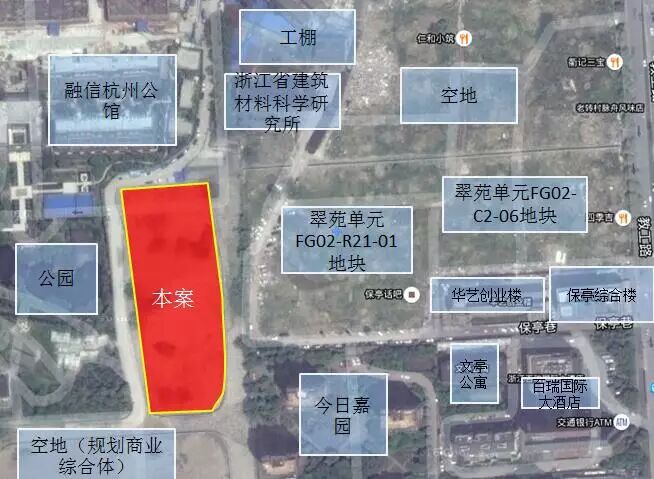 2016年11月28日,杭房以总价26500万元竞得翠苑单元XH0903-11地块,成交楼面价12571元/㎡,溢价率1.67%。地块位于融信杭州公馆南面,西面为公园,南面为规划商业综合体。