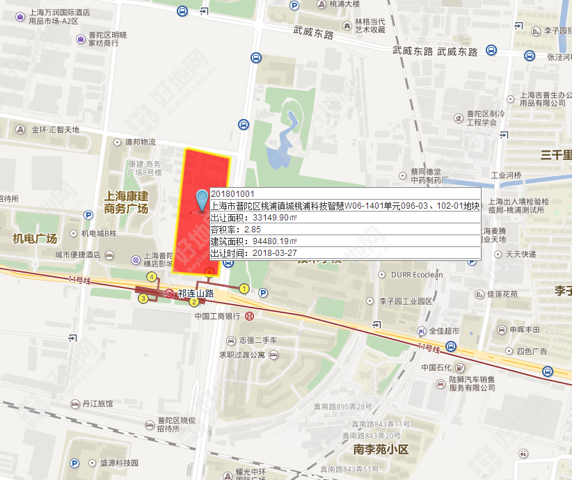 地块位于桃浦科技智慧园范围内,沿地块北侧武威路向西2公里左右可进入外环高速路,沿地块南侧真南路向东1.5公里左右可进入中环路/真北路。另外,地块东南侧真南路祁连山路路口为地铁11号线祁连山路站,30分钟左右可达徐家汇,1小时左右可达迪士尼,出行比较便捷。