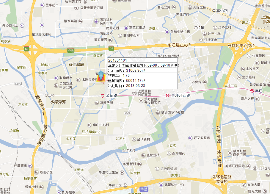 地块周边以居住区为主,西侧就是嘉闵高架,北面就是2京沪高速(可通过嘉闵高架直接转换G2京沪高速,也可通过华江公路直接到达G2江桥收费口);地块距离嘉闵高架入口约3公里,距离G2江桥收费口约站3.9公里;地块距离地铁13号线金运路站约500米,距离万达江桥店约1.9公里。