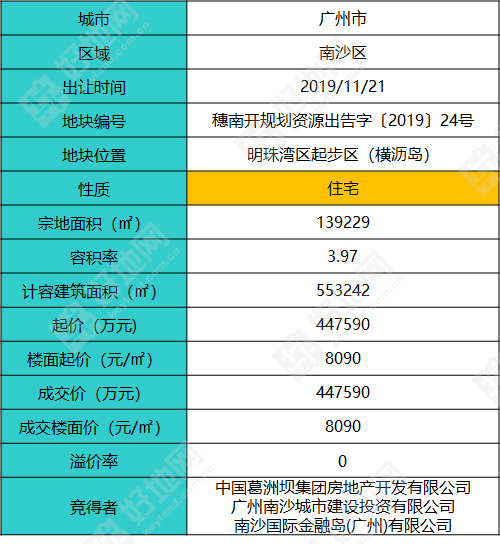 竞得人:中国葛洲坝集团房地产开发有限公司,广州南沙城市建设投资有限公司,南沙国际金融岛(广州)有限公司