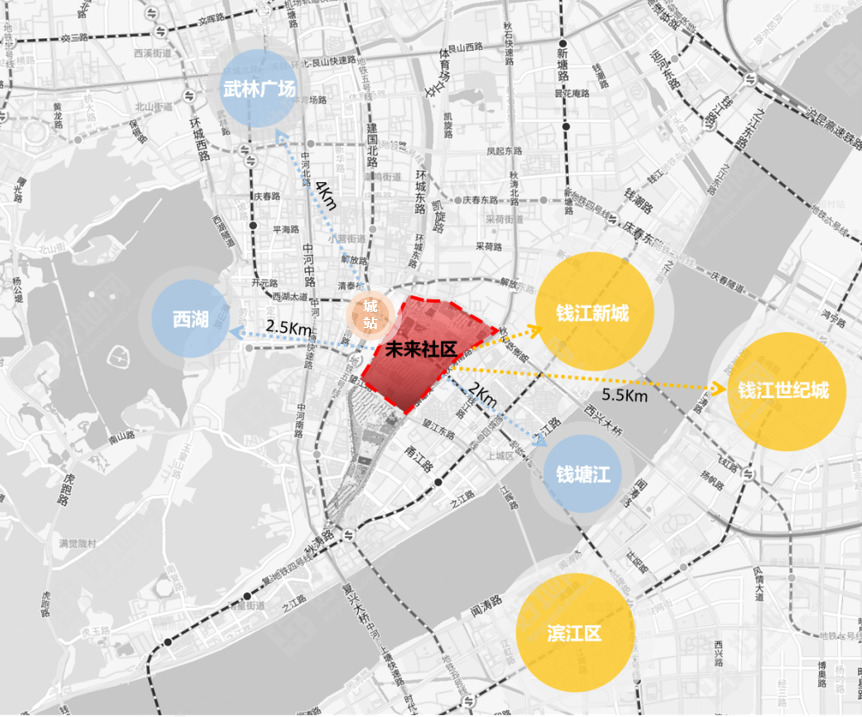 始板桥社区是浙江省首批24个试点项目之一,属于更新改造类项目,是位置条件最好的项目。社区位于上城区望江单元,距离钱江新城1.5Km、钱江世纪城5.5Km、武林商圈4.0Km、西湖2.5Km、钱塘江2.0Km。地处杭州主中心,是杭州“拥江发展”要地,也是大湾区建设的重要窗口。
