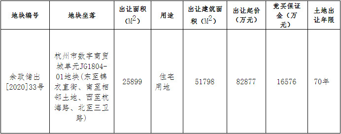 杭州市余杭区国有建设用地使用权挂牌出让公告