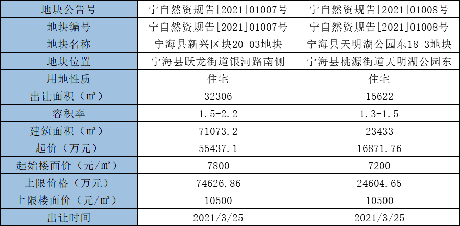 好地网2月20日消息(研究员 李姗姗)今天,宁波宁海县挂牌2宗宅地,预计3月25日出让。