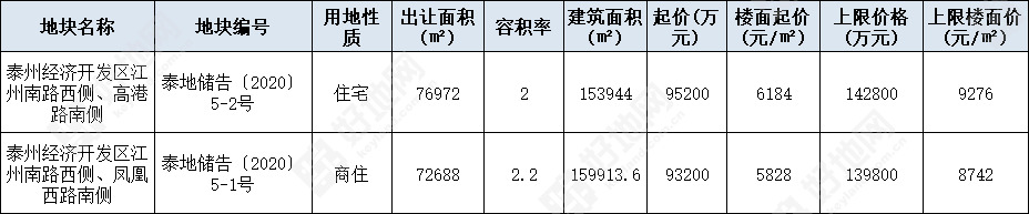 泰地储告〔2020〕5-1号泰州经济开发区江州南路西侧、凤凰西路南侧地块