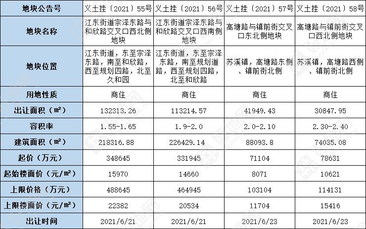 好地网5月19日消息(研究员 许更新)今天,金华义乌市挂牌4宗商住地,其中2宗位于江东街道,2宗位于苏溪镇。