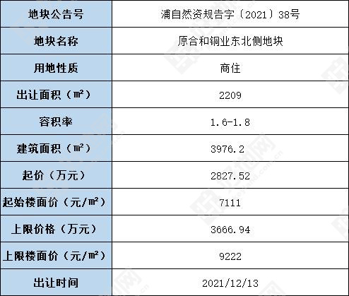 地块起价2827.52万元,起始楼面价7111元/㎡,上限价格3666.94万元,上限楼面价9222元/㎡。达到上限价格后转为竞拍配建用房(政策性住房)程序。