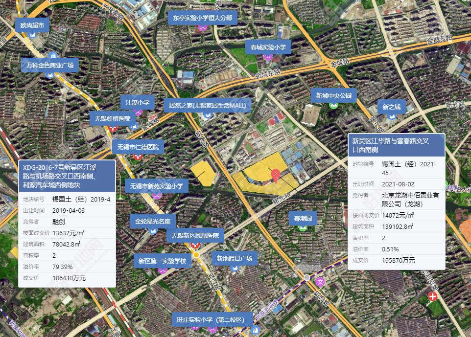地块紧邻机场快速路、金城路高架、泰伯大道等城市交通主干道,距离地铁3号线太湖花园站1.5公里左右,未来还有规划中的地铁5号线,附近设有春潮商业街站,交通优势明显。