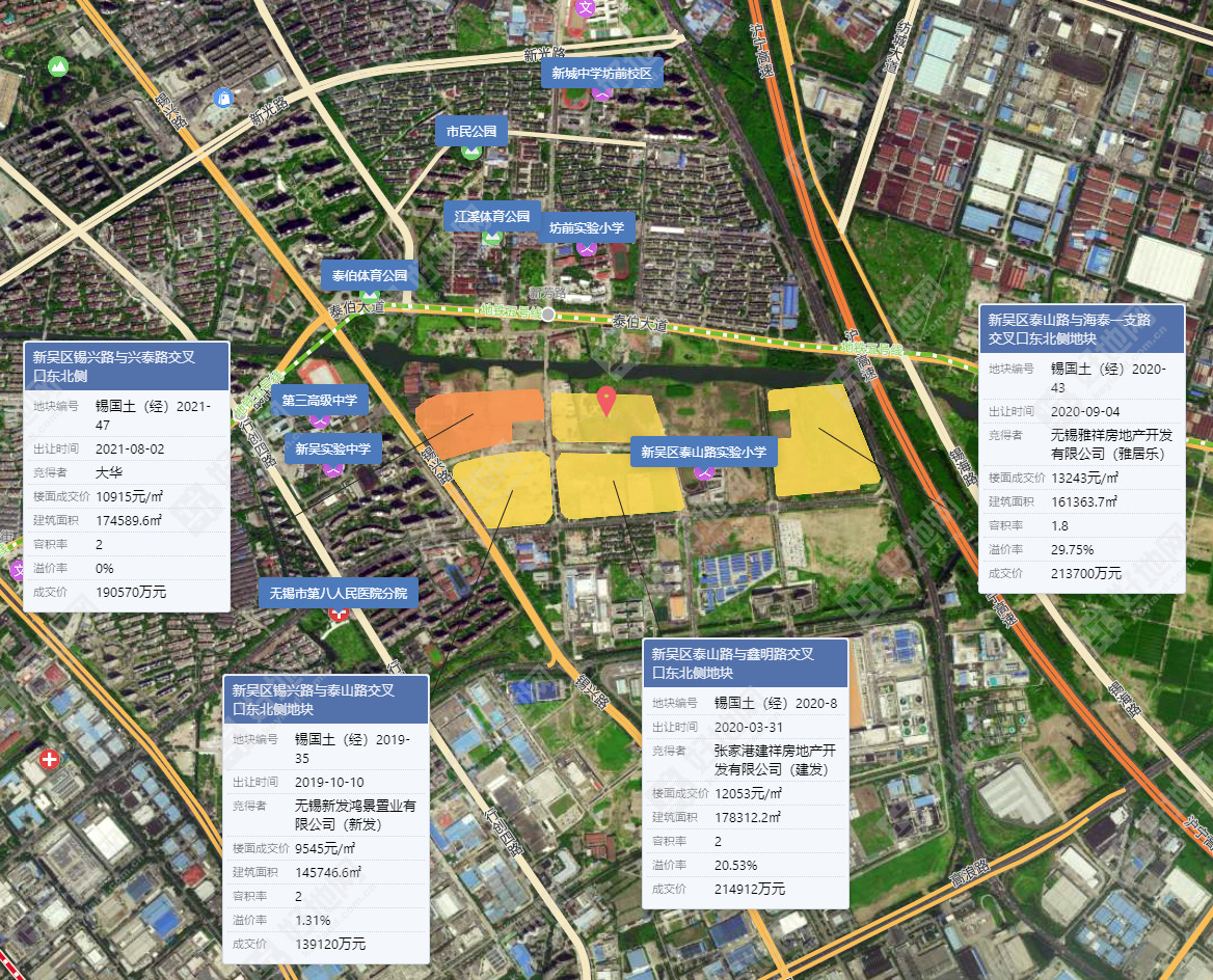 地块位于泰伯广场片区,周边项目林立。西侧仅大华于去年二批次中以19.1亿竞得1宗商住地,楼面价10915元/㎡。