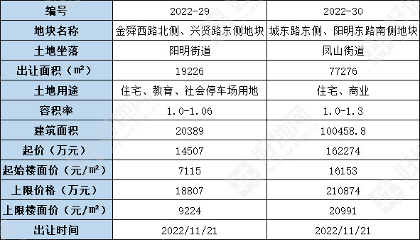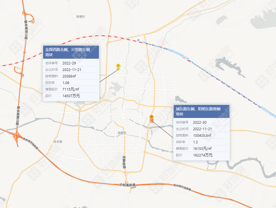 好地网10月21日消息(研究员 孙航海)今天,宁波余姚市挂牌2宗商住地,分别位于阳明街道和凤山街道,预计11月21日出让。