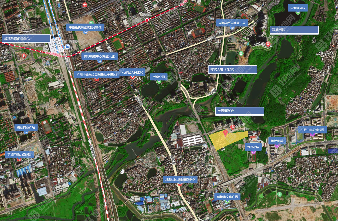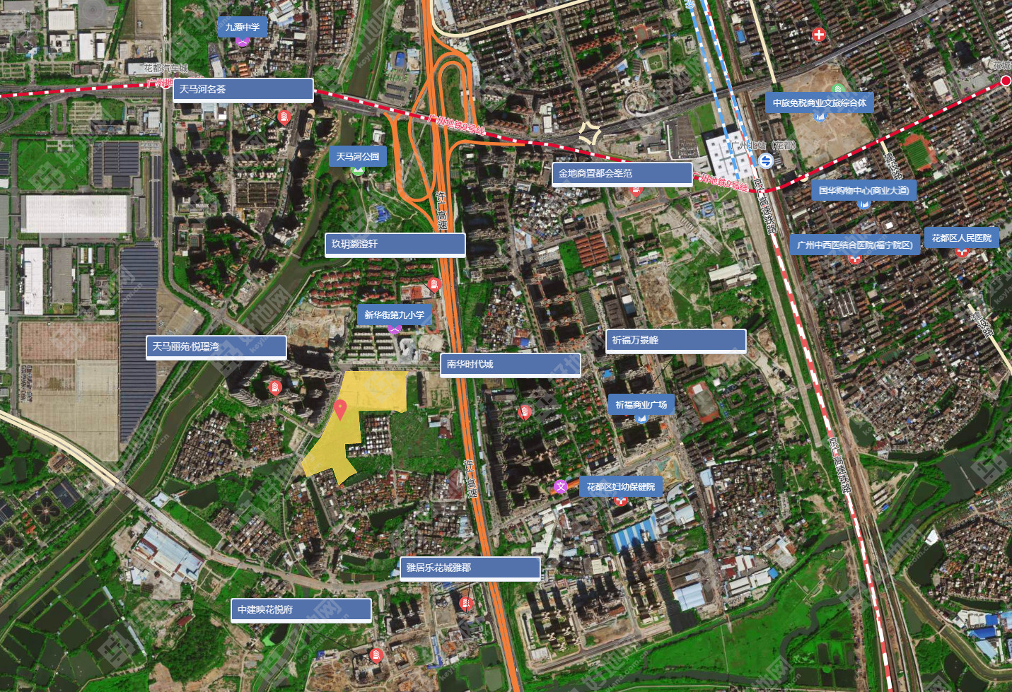 点评:地块位于花都空铁融合示范区广州北站板块,东至许广高速,北接望亭路,西临天马河,南邻工业大道,与新华街第九小学仅一路之隔,周边分布有天马丽苑、南华时代城等成熟社区。