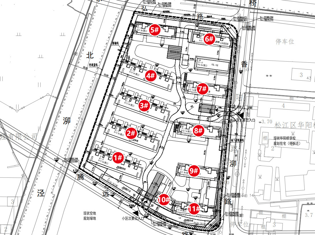 地块位于松江老城板块,东至香泖路,南至腾远路,西至河道,北至乐弘路,周边有车墩幼儿园、华阳桥学校、华阳步行街等生活配套。
