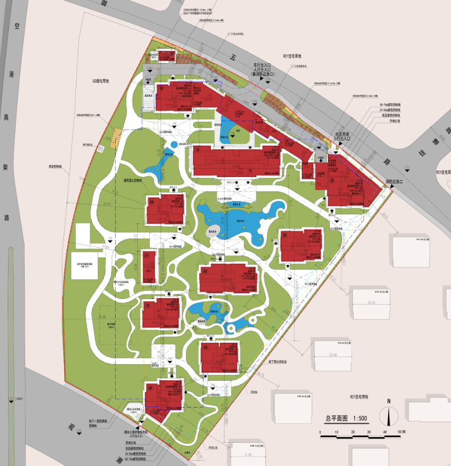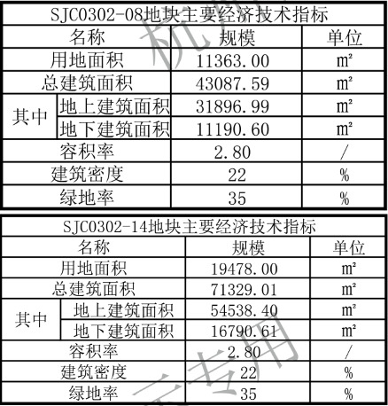 南侧SJC0302-14地块用地面积19478㎡,总建筑面积71329.01㎡,其中地上计容面积54538.4㎡,地下建筑面积16790.61㎡。容积率2.8,建筑密度22%, 绿化率35%。
