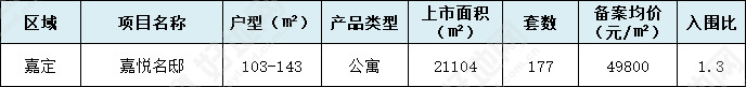 嘉悦云上首次开盘是在2022年12月17日,推出640套103-143方公寓房源,总面积68418㎡,均价49800元/㎡,认购率174.5%,入围分数线56.2分,迄今已去化完毕。