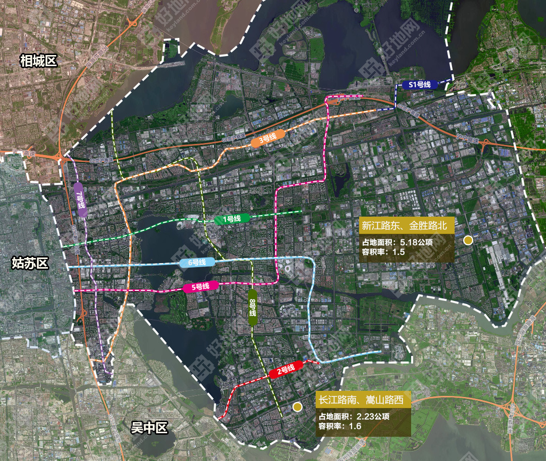 2、位于胜浦的新江路以东、金胜路以北地块,容积率从2.0下调到1.5。
