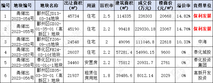 奉化区岳林街道宅地,锦屏街道安置房用地分别由奉化国资旗下的奉化城投和奉化投资集团底价竞得。