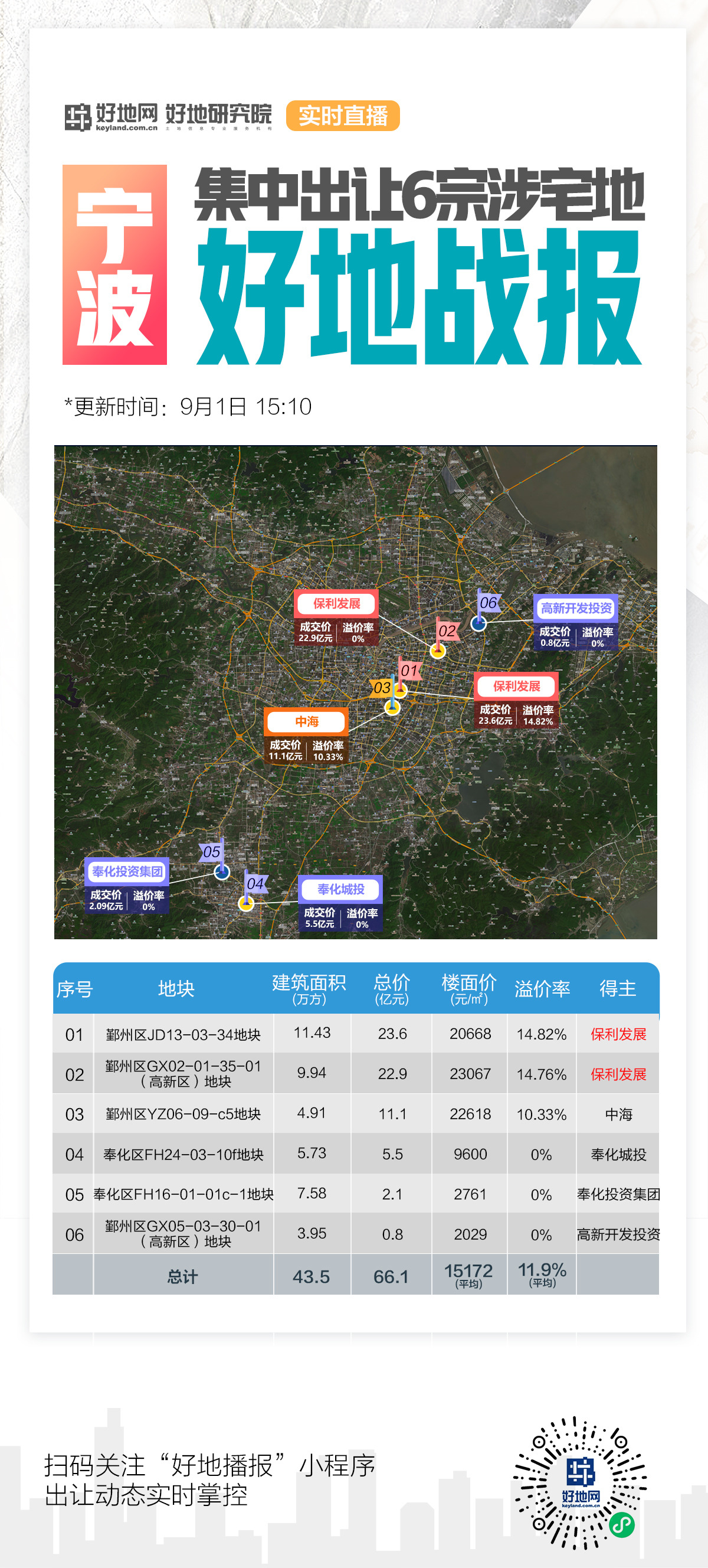 地块成交情况(截至9月1日15点30分)