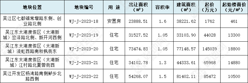 起价145039万元,起始楼面价18800元/㎡,是吴江区历年来的最高。