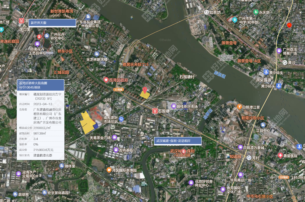 2023年4月,广东建工联合体以底价竞得桥梓大街南侧地块,成交楼面价2.2万/㎡,实际楼面价约2.5万/㎡,项目案名为“建鑫鹅潭名郡”,目前待售中。