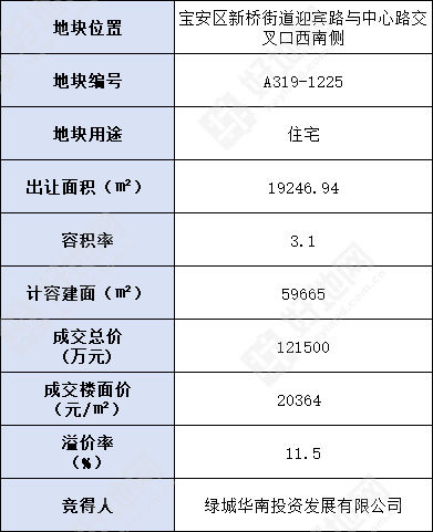 经过25轮线下竞价,地块最终由绿城华南投资发展有限公司以121500万元竞得,溢价11.5%,成交楼面价20364元/㎡,实际楼面价为22459元/㎡。