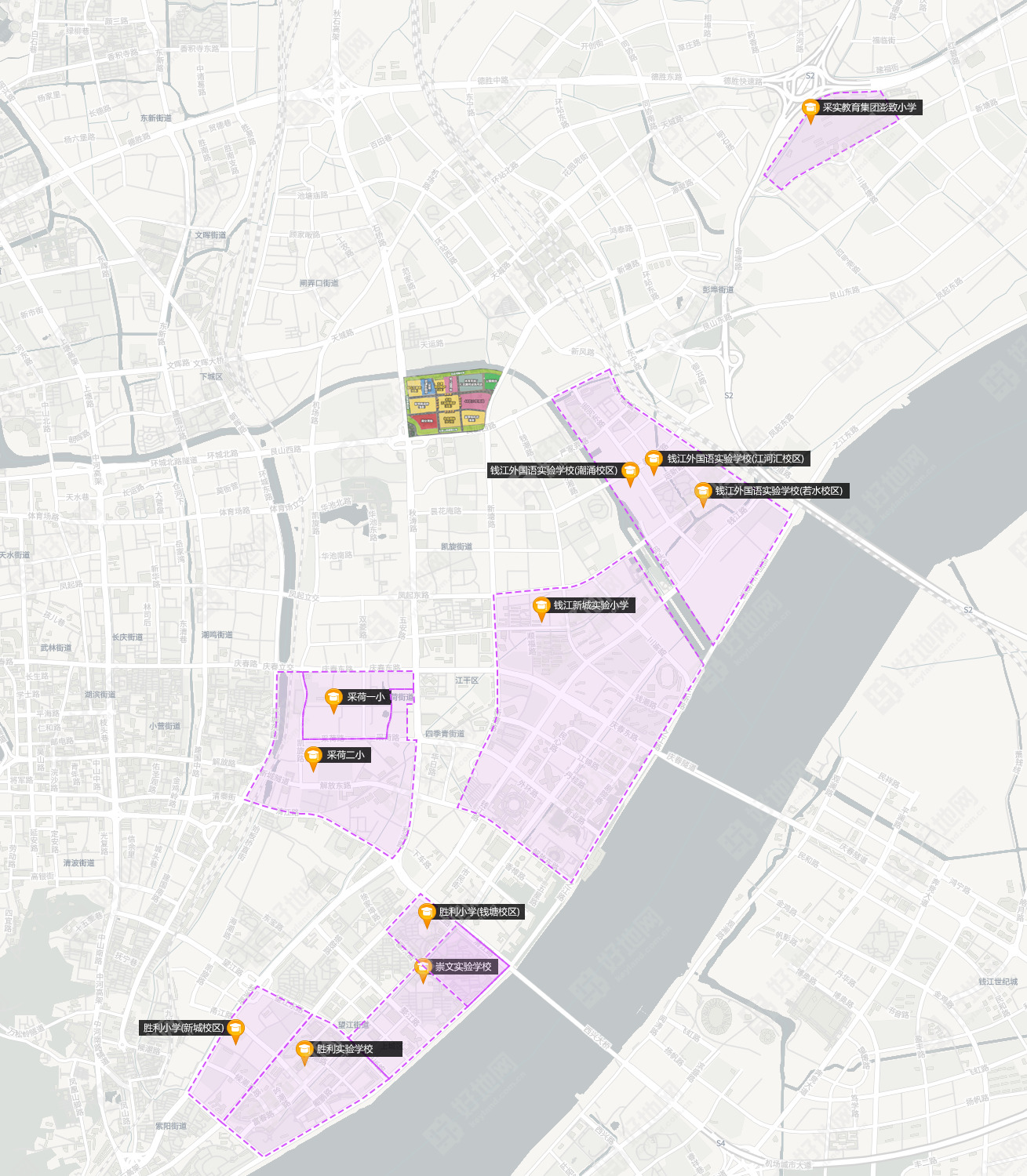 5.胜利:目前分为钱塘校区和新城校区,钱塘校区的学区范围为望江街道所辖的耀华社区、在水一方社区,新城校区的学区范围为紫阳街道海潮社区秋涛路以东。新城校区为新校区,范围内最新楼盘有仁恒滨江园、钱江侯潮府、滨江上品等。