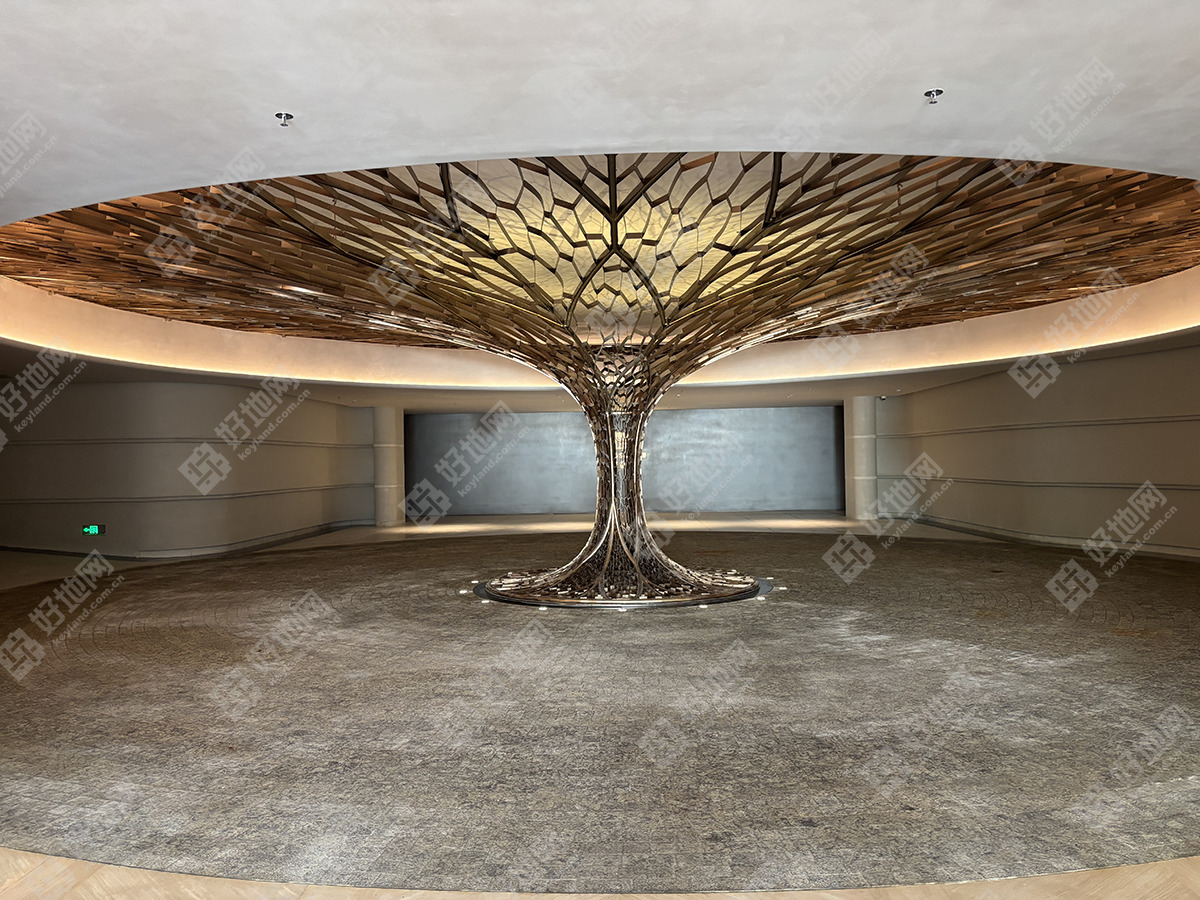 杭序府地下车马厅比较有特色,造价超两百万的黄金树,由3000多个金属网格与3万多颗螺丝打造而成。业主打车归家,不用担心天气,享受酒店式服务。