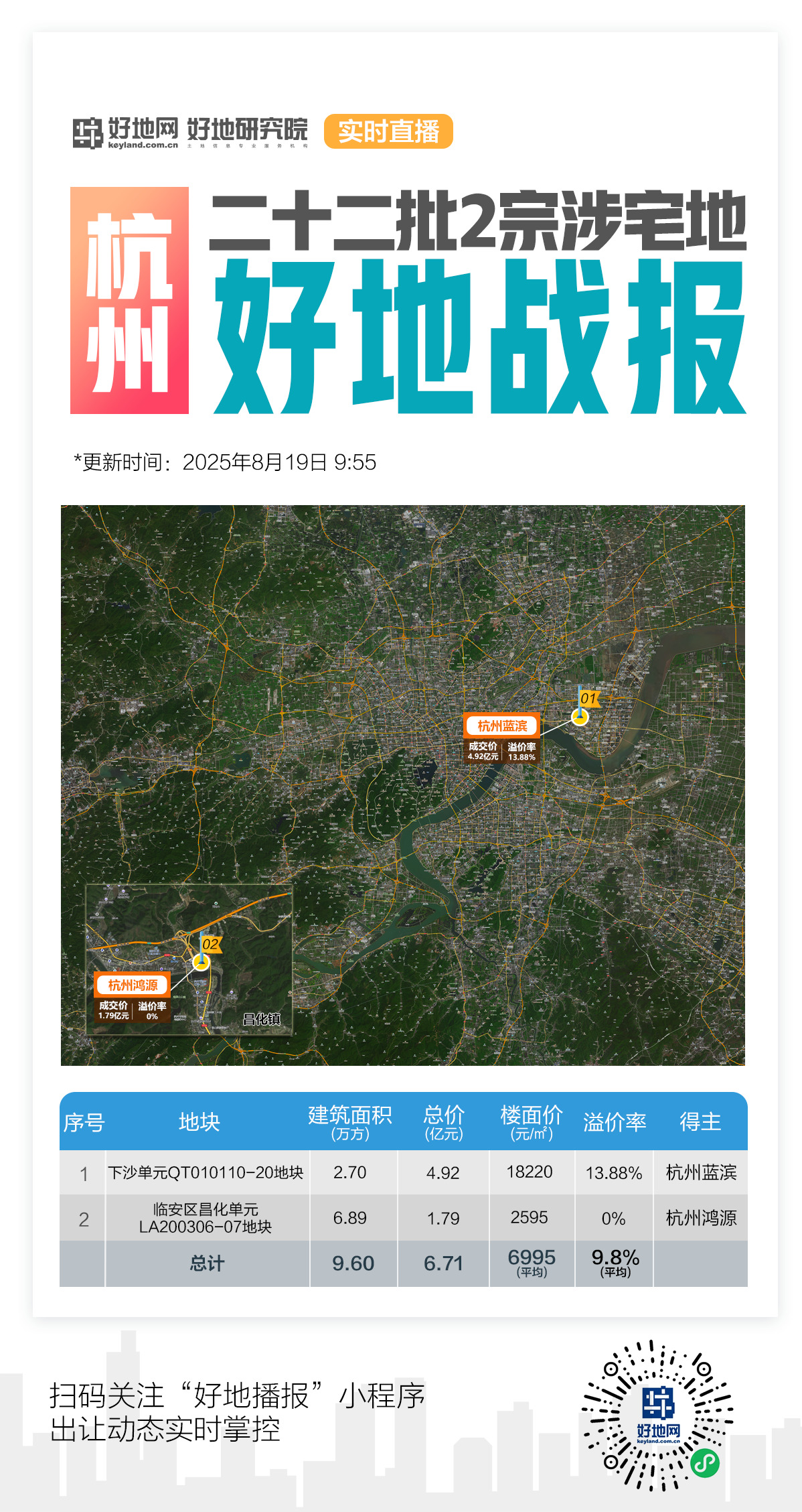 临安昌化镇低密地,则由杭州鸿源房产底价竞得,成交价17890万元,楼面价2595元/㎡。