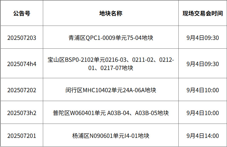明天(9.4),上海七批次土拍即将举行,5宗地块起价98.7亿元。