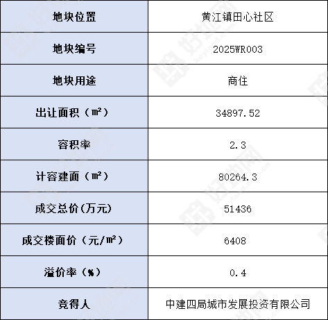 经过3轮竞价,地块最终由中建四局城市发展投资有限公司以51436万元竞得,溢价0.4%,成交楼面价6408元/㎡。