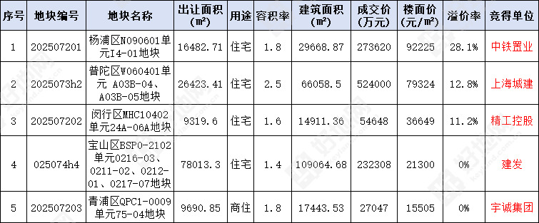 4、宝山罗店低密宅地由厦门建发底价竞得,总价23.23亿元,成交楼面价21300元/㎡。