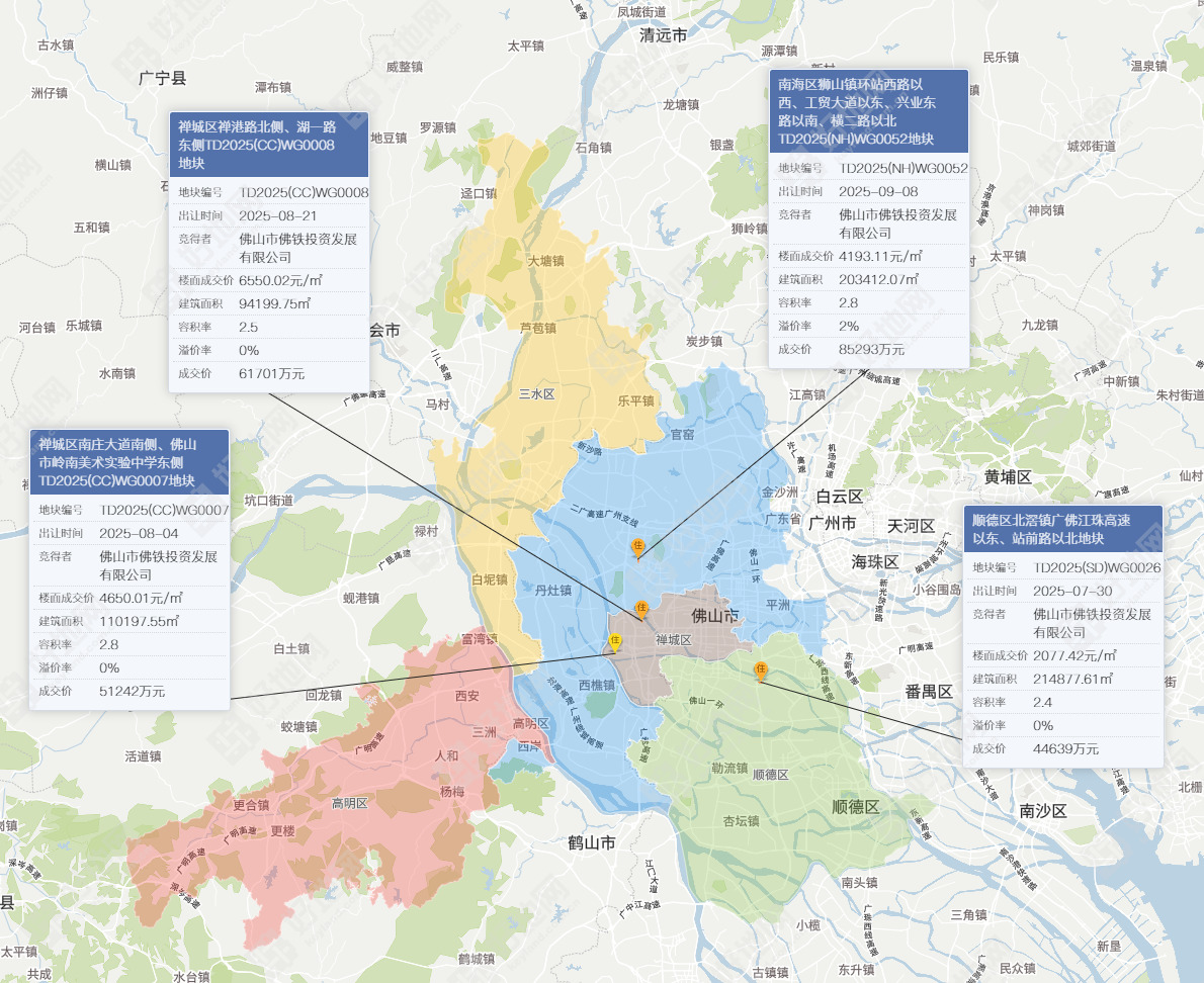 此次拿地,是佛铁今年在佛山竞得的第四宗涉宅地,前三宗分别位于顺德区北滘镇(1宗)、禅城区南庄镇(2宗),4宗地总拿地额24.3亿元,总建面62.3万㎡。