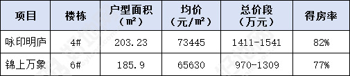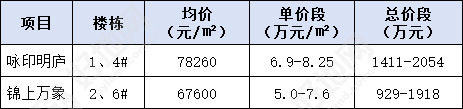 咏印明庐和锦上万象府第二次开盘价格对比情况