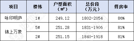 1. 锦上万象府首开登记484组和二开登记317组,咏印明庐登记客户比锦上万象府二开少171组;