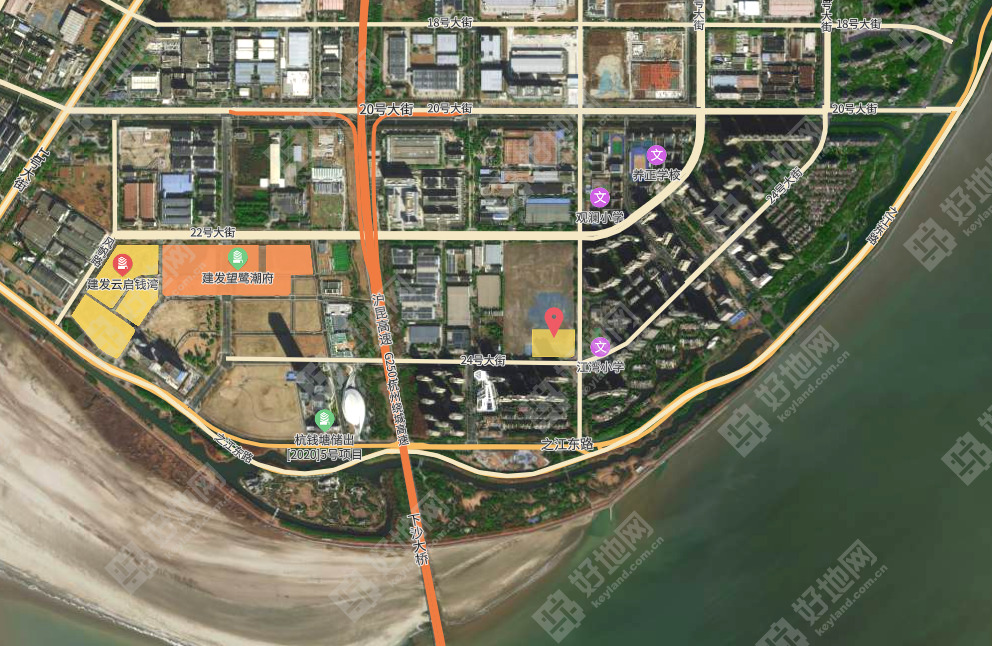 地块所在的东部湾新城,是杭州向东“接轨大上海,融入长三角、打造增长极”的时代产物,是杭州难能可贵的可以成片开发建设的空间。地块周边已形成较成熟的居住氛围;现有养正学校、观澜小学、江湾小学等配套;南侧步行可达沿江湿地公园。