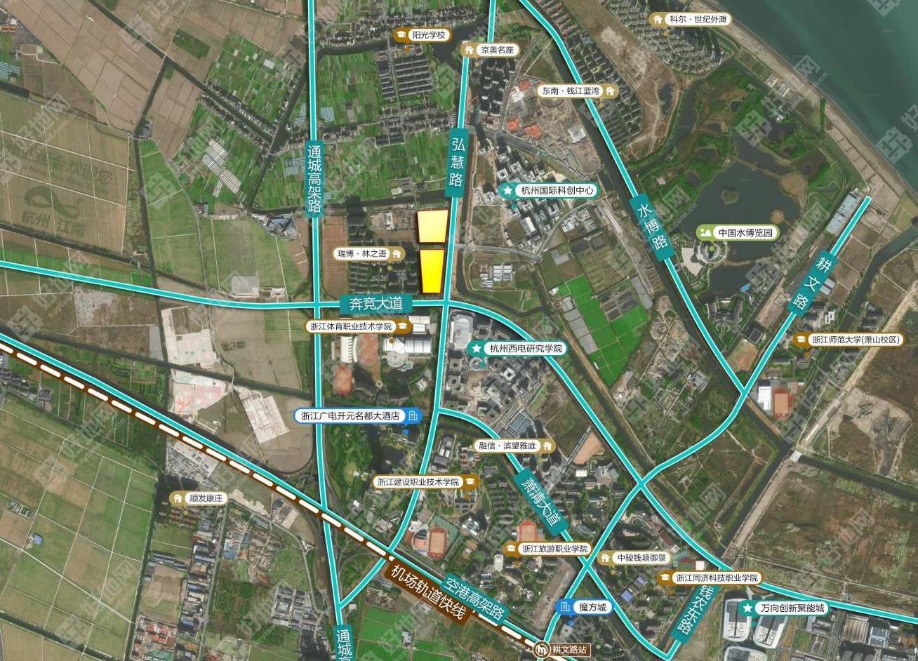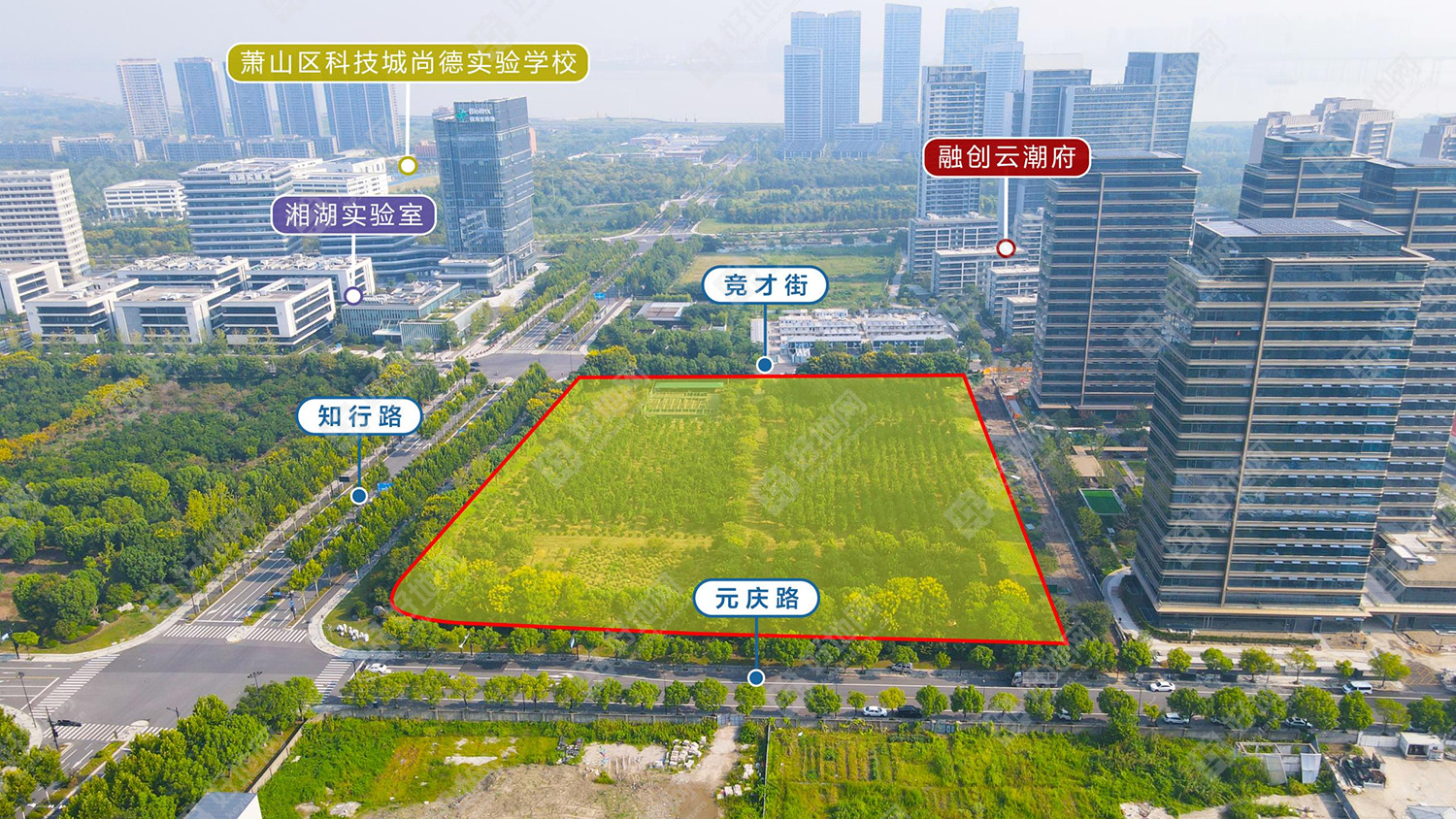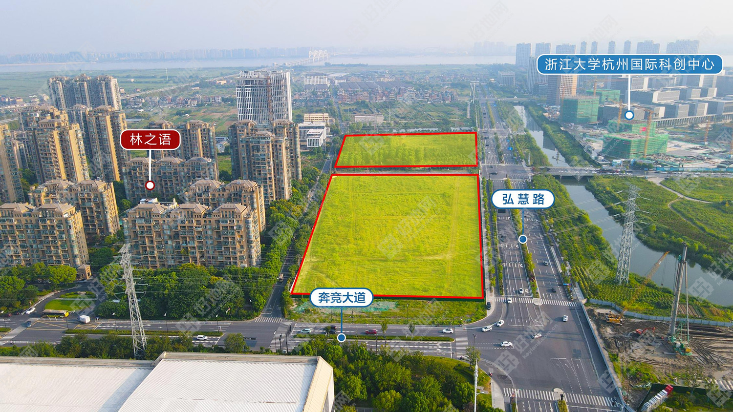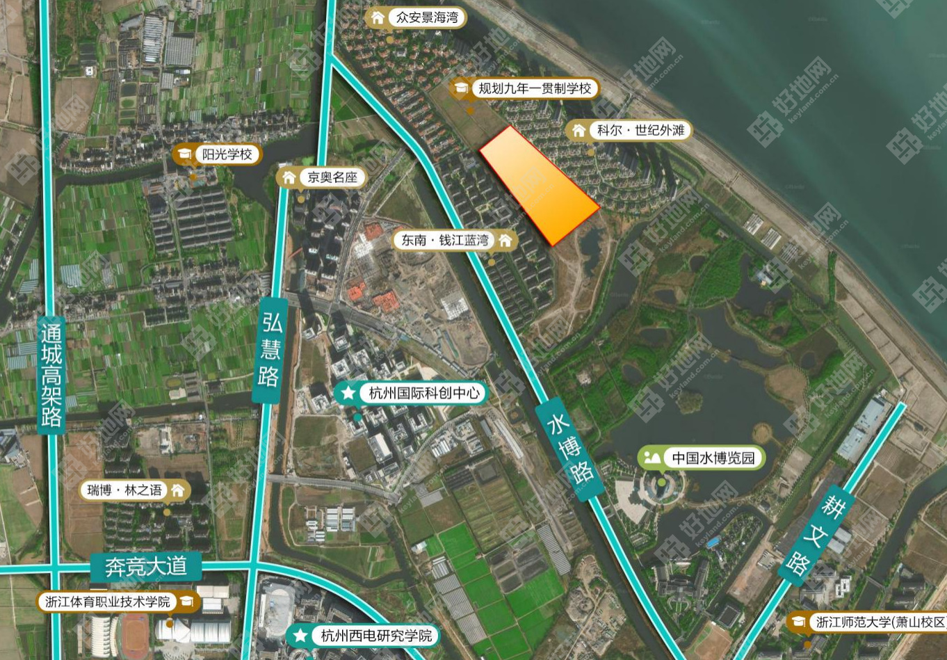 地块紧邻浙大国际科创中心、西电研究院;南侧奔竞大道可便捷通达钱江世纪城;东北两侧水系环抱,适宜打造高端低密宅区。