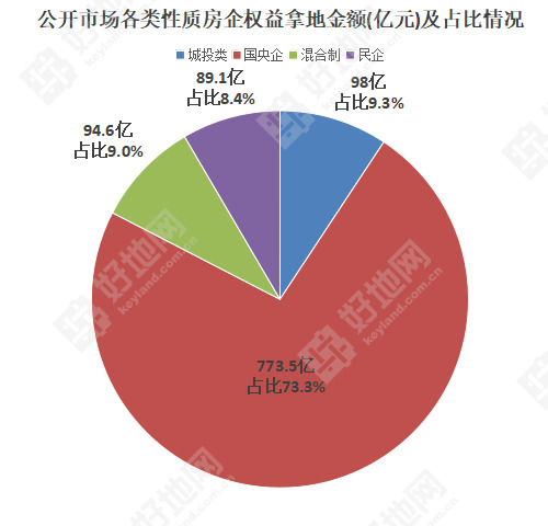 按拿地房企性质计算,央国企是拿地主力军,权益摘牌金额达773.5亿元,占比超过七成(73.3%)。包括中海、保利、中建、金茂、招商蛇口以及华润等央企,以及象屿、越秀、建发等国企。