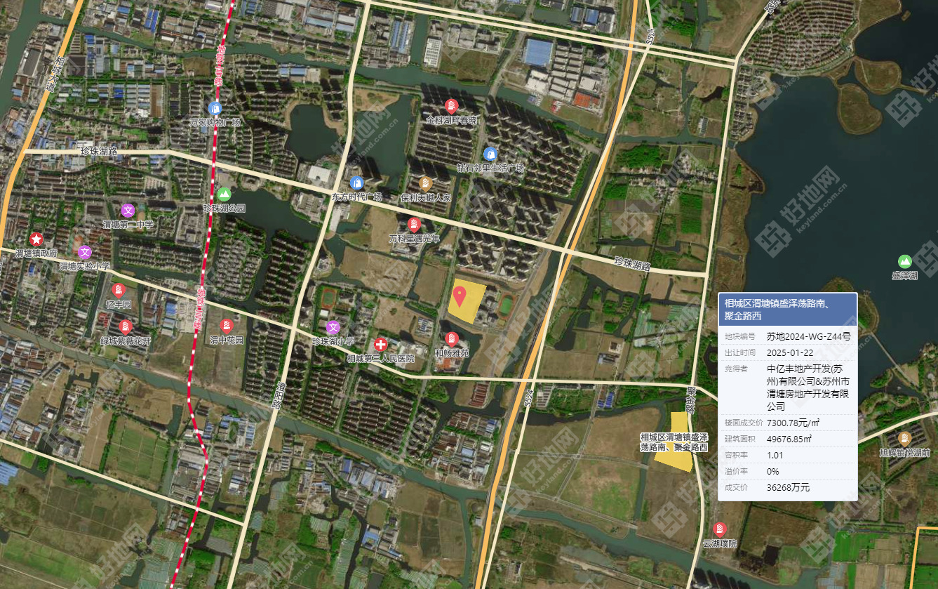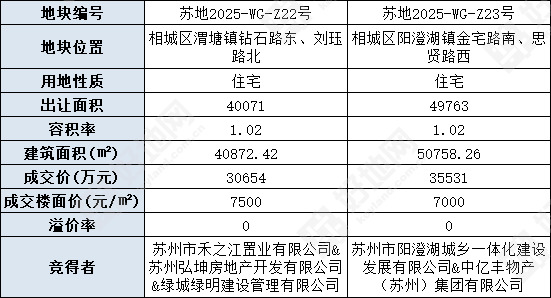 苏州市阳澄湖城乡一体化建设发展有限公司&中亿丰物产(苏州)集团有限公司联合以底价35531万元竞得该地块,楼面价7000元/㎡。