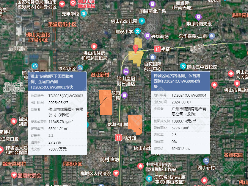 地块位于禅城区城门头路两侧、祖庙路西侧,出让面积23028.65㎡,综合容积率3.14,建筑面积72297㎡。