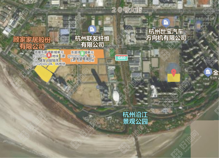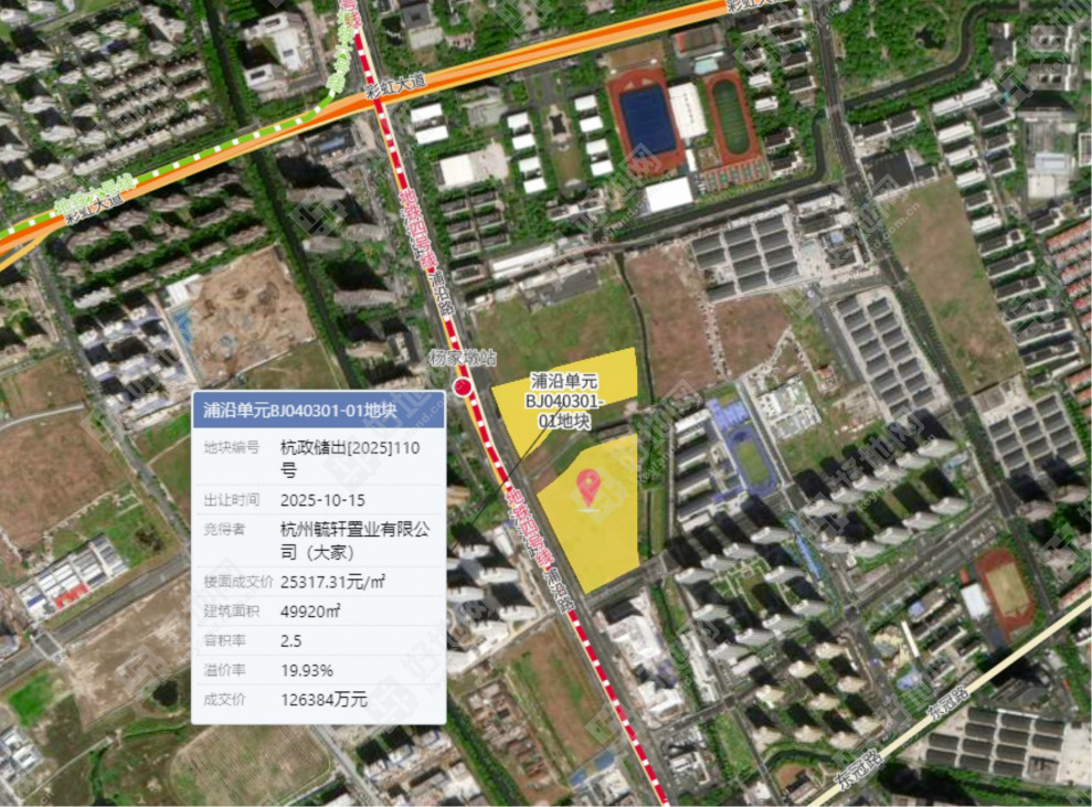 地块位于滨江区浦沿单元,本月15日北侧紧邻已成交有大家地块,成交楼面价25317元/㎡,溢价率19.93%。