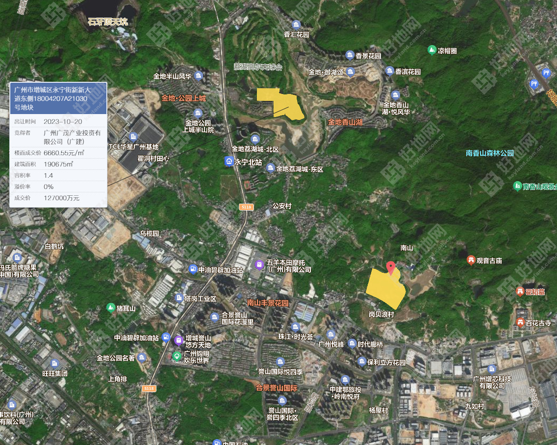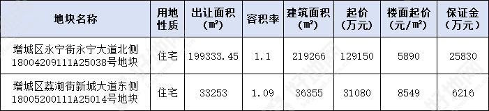好地网11月10日讯(研究员 黄卓贤)今天,广州增城区挂牌2宗宅地,分布于永宁街与荔湖街,容积率均为1.1,总出让面积23.3万㎡,总建面25.6万㎡,总起价16亿元,拟于12月12日10时进行限时竞价。