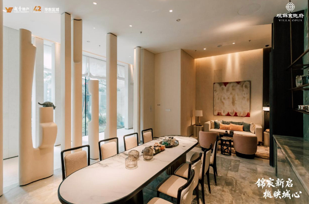 从社区会所配置上看,越秀·观锦宸樾府在仅109户的小体量规划下,配置了约1400㎡的会所涵盖恒温泳池、私宴厅、品茗区等十大功能空间,不仅在硬件功能上非常齐全,同时在文化内涵展示上堪称“活态吴越文化展厅”,其配置较主城千万级豪宅有过之而无不及。
