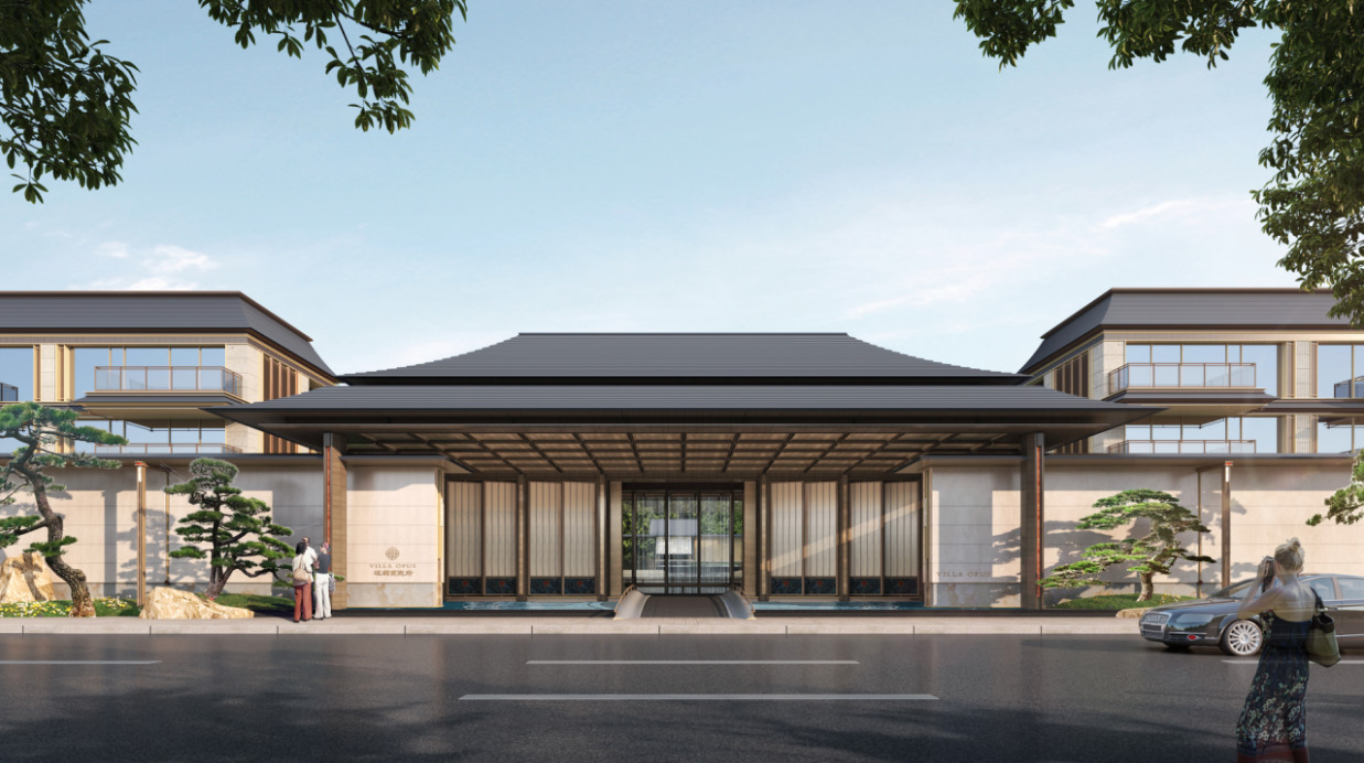 从归家动线上看,项目景观以吴越文化为魂,打造了“五进礼序”与“观锦九境”,约10米高的重檐宫制门头、约60米宽的门庭,共同构建出恢弘的归家气度。