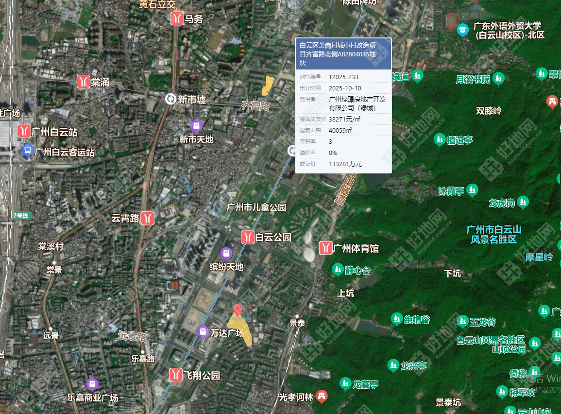 好地网11月18日消息(研究员 林嘉辉)今天,广州市挂牌1宗宅地,位于白云区白云新城板块,拟于12月18日10时进行限时竞价。