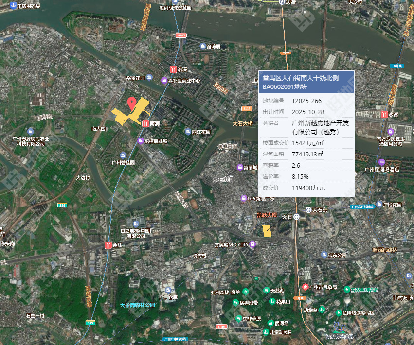 地块位于广纸片区,距地铁11号线棣园站约300米,北侧去年9月越秀底价竞得的熙悦江湾项目地块,成交楼面价34000元/㎡,与本地块楼面起价一致。目前,熙悦江湾项目均价约5.5万/㎡。