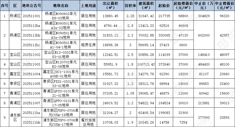 9宗地块中,预计仅有杨浦滨江、青浦西虹桥、浦东川沙等3宗地块有竞争。具体来看: