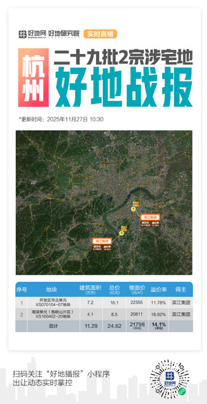 明天(12.2),滨江区浦沿单元将加推1宗宅地,起价136119万元,起始楼面价20935元/㎡。